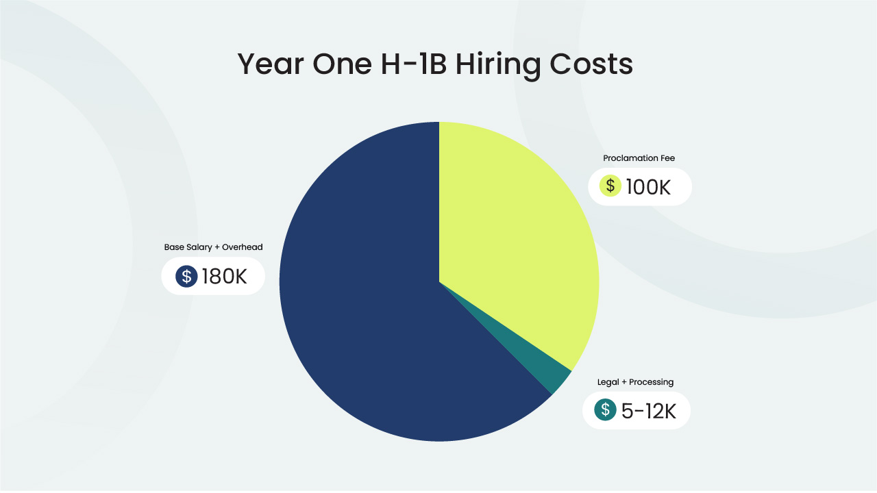 Following the September 2025 proclamation, new H-1B petitions require a $100,000 fee in addition to existing registration, legal, and payroll costs. First-year cost per engineer can exceed $250,000 (fragomen.com).